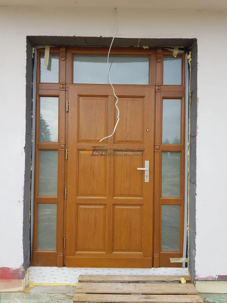 W skład kompletu drzwi dębowych wchodzi: