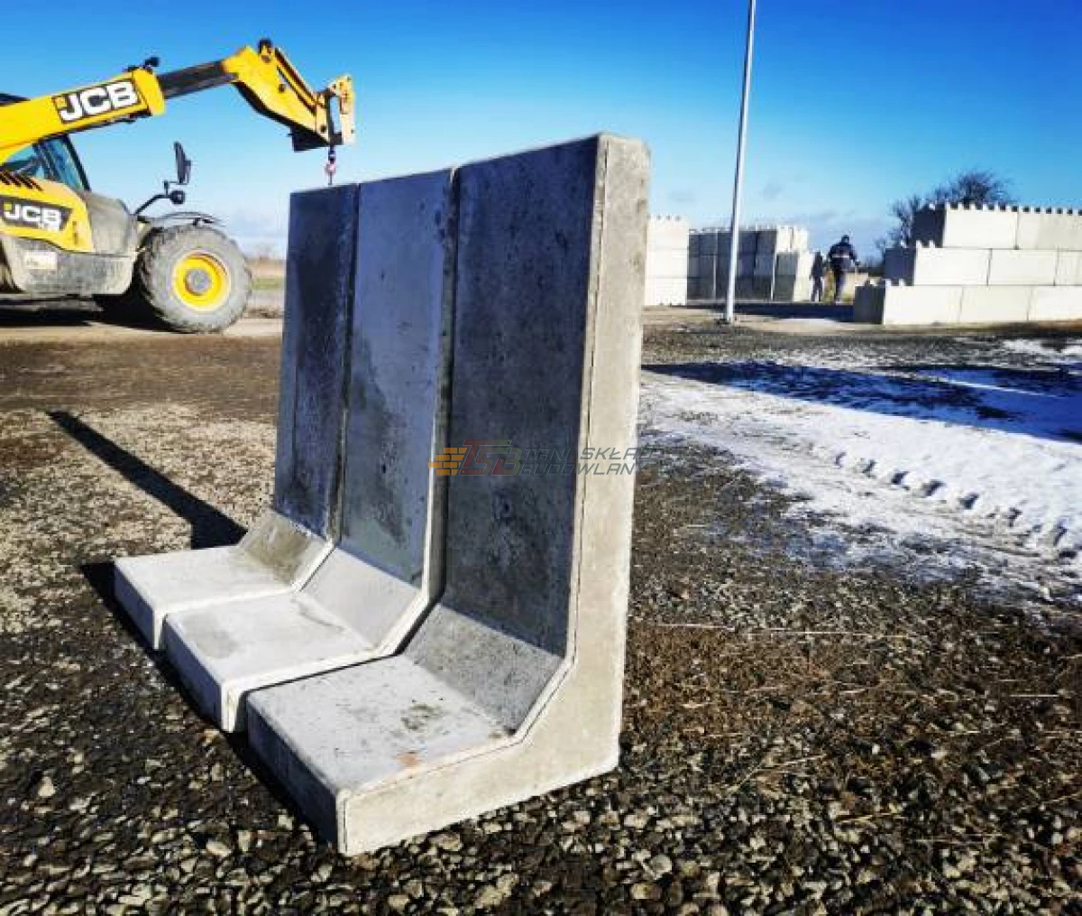 Mury oporowe typu L wykonane pod nadzorem zakładowej kontroli produkcji, z zachowaniem powtarzalności wymiaru.