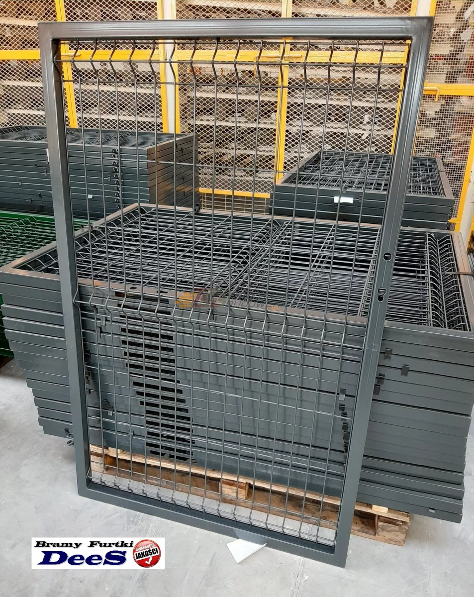Wszystkie produkty z wypełnieniem panelowym drut fi 5mm, wspawany w światło ramy. Zawiasy wspawane w słupy. Nie stosujemy półśrodków typu, wypełnienie panelowe nitowane na zawijakach, zawiasy na blachowkrętach.